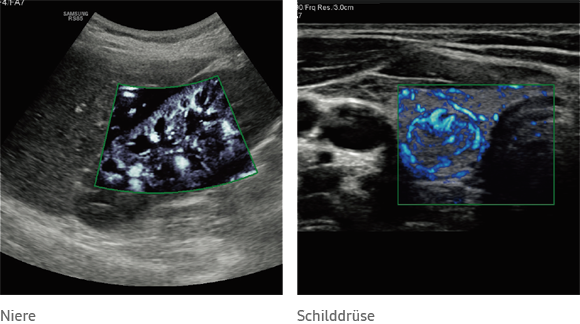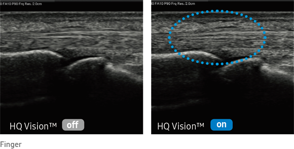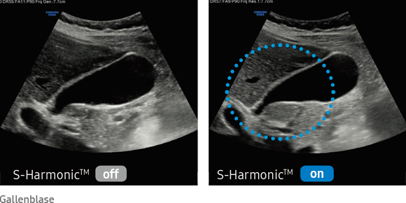 The new S-Harmonic™ technology enables brilliant images both near the surface and in depth. It minimizes noise and thus ensures homogeneous ultrasound images.