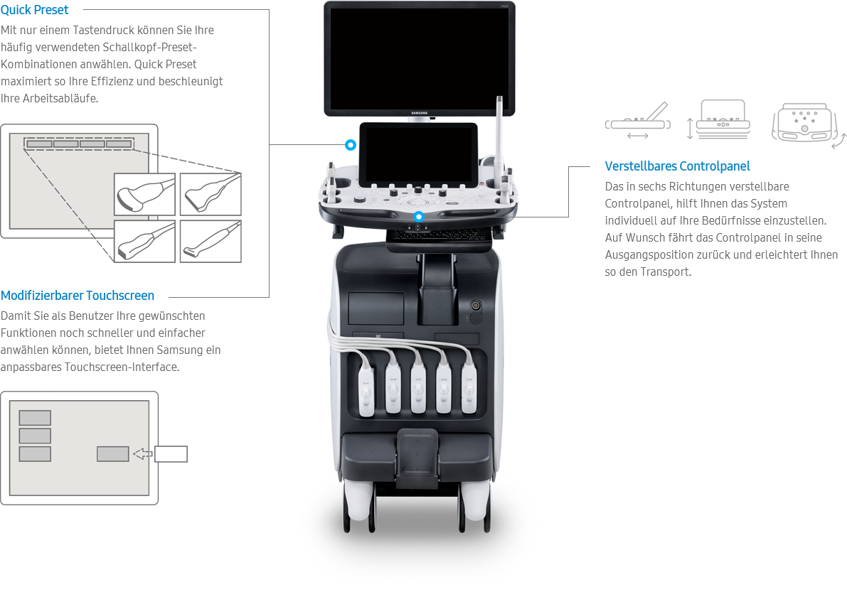 The Premium Ultrasound System RS85 from Samsung, with its integrated solutions offers you exquisite image quality and intelligent expert tools for your fast and reliable diagnosis.